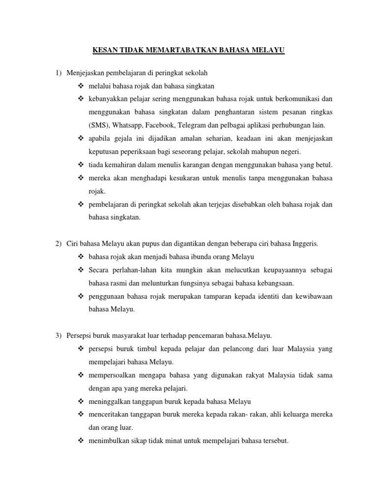 Kesan Tidak Memartabatkan Bahasa Melayu Pdf