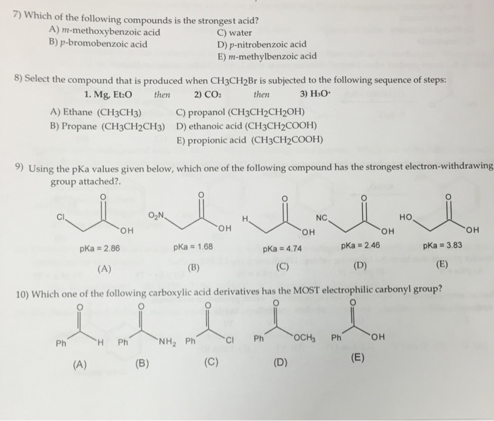 ACH3OCH3 bCH3CH2OH cCH3CHO dCH3CO2H. Among the following compounds the strongest acid is. CH 3 CH 2 CH ClCOOH.
